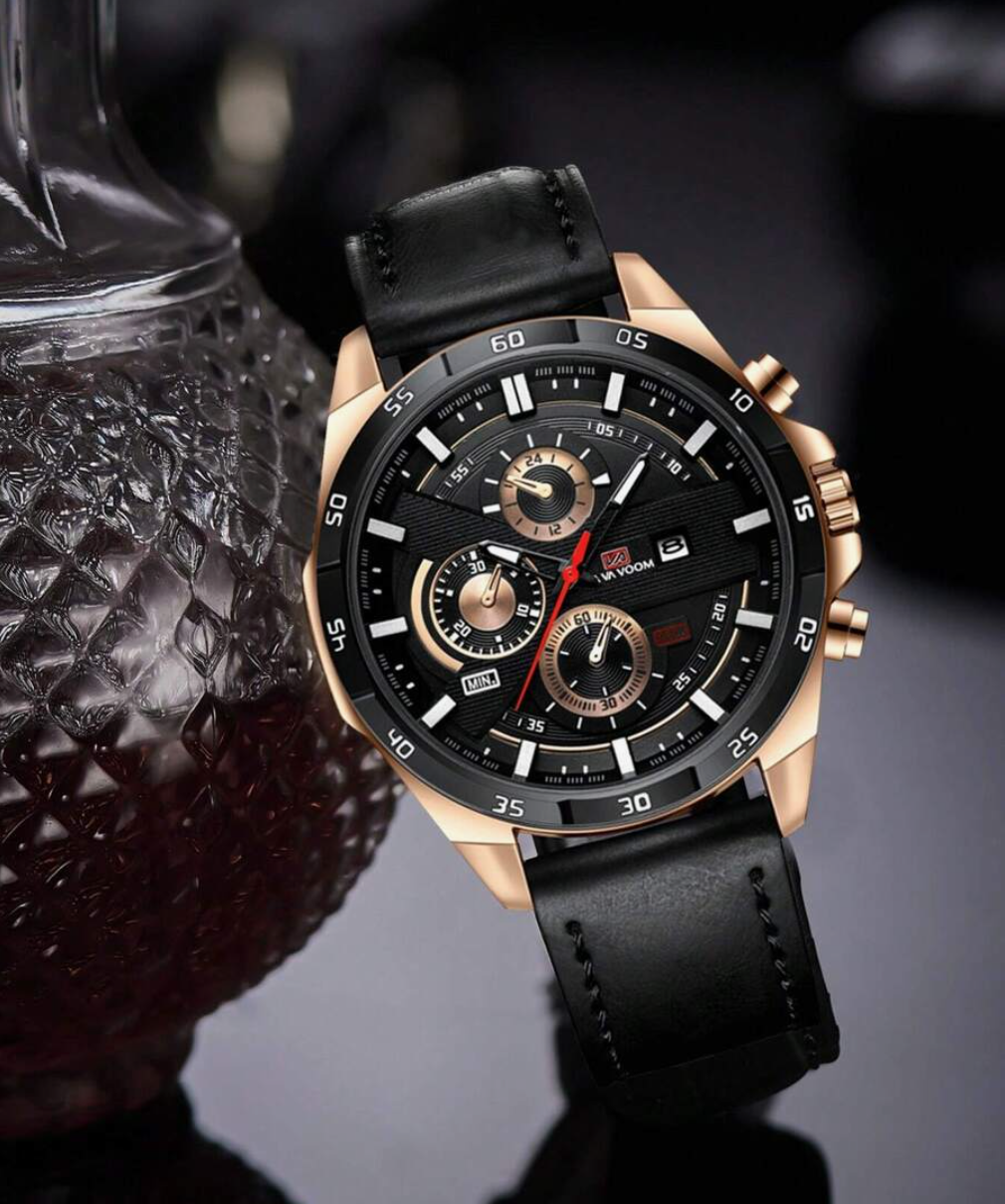 Découvrez la montre qui attire tous les regards : une montre pour homme au grand cadran, dotée d’un bracelet en cuir véritable, conçue pour l’homme moderne qui veut allier style affirmé et sophistication.