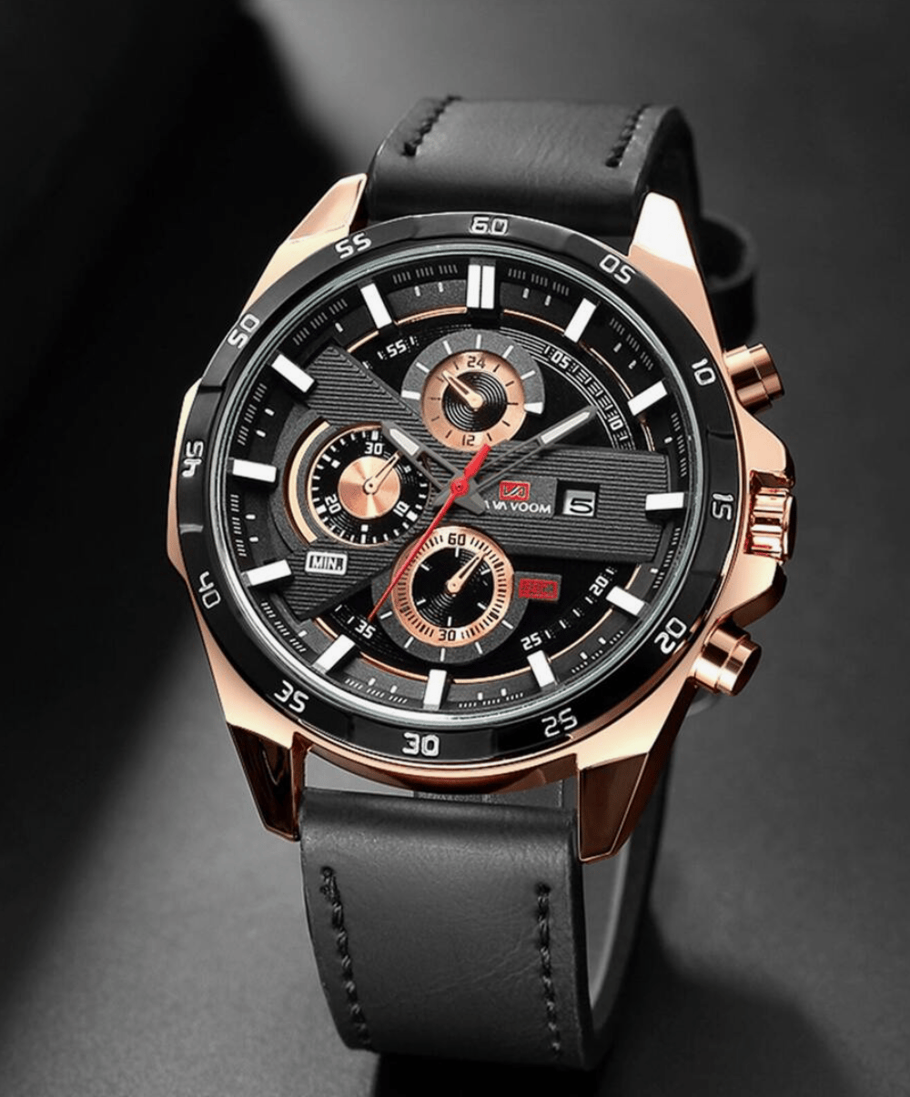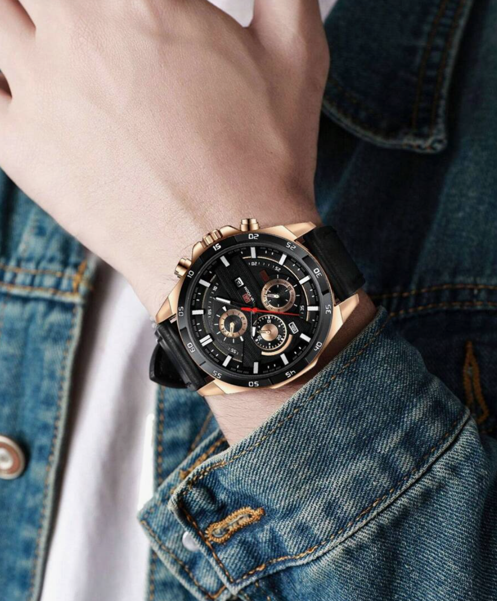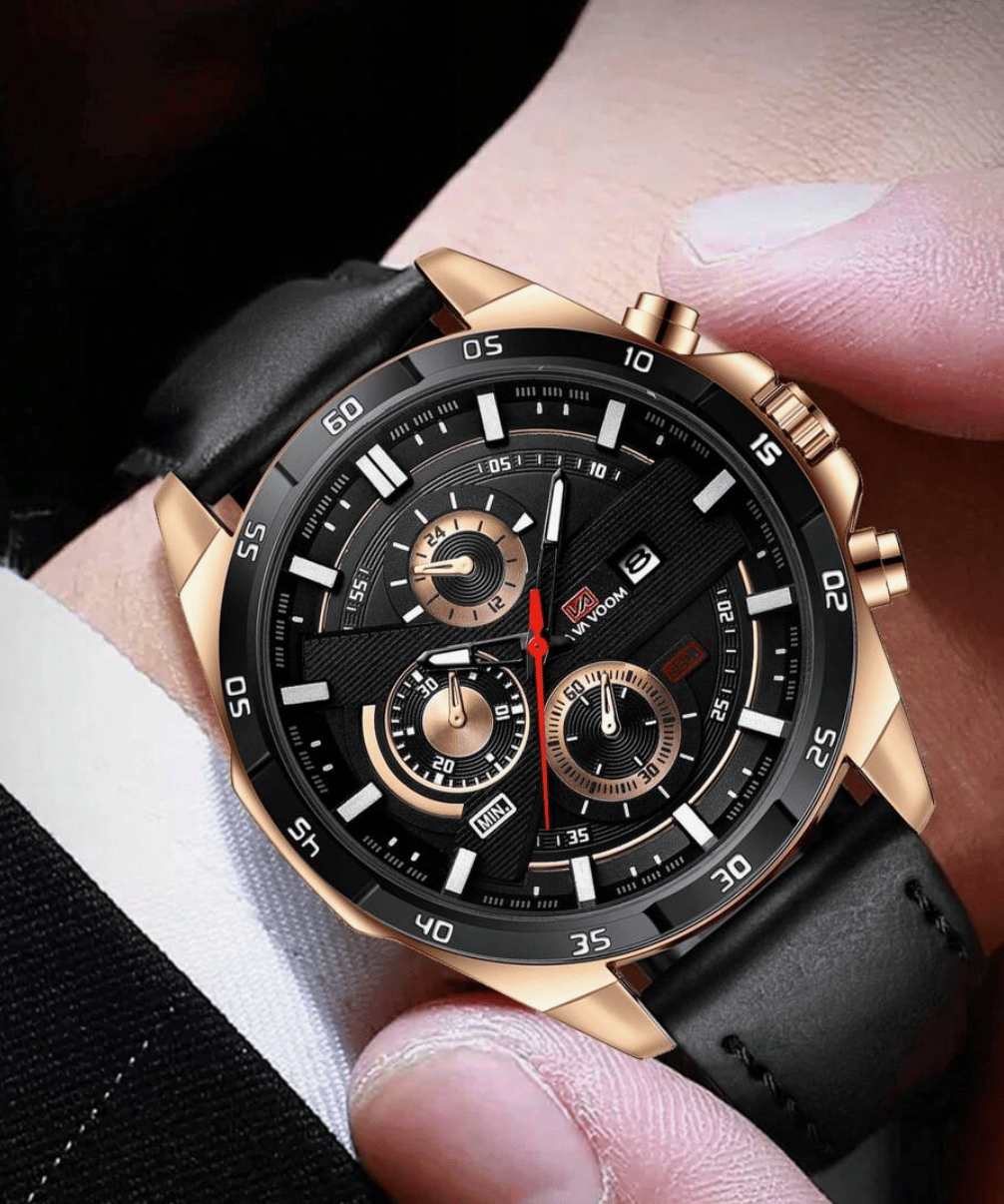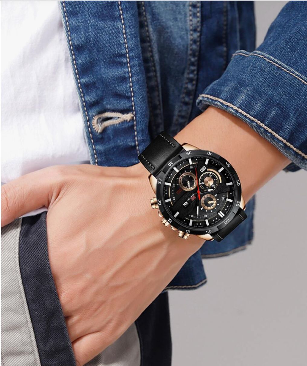 Découvrez la montre qui attire tous les regards : une montre pour homme au grand cadran, dotée d’un bracelet en cuir véritable, conçue pour l’homme moderne qui veut allier style affirmé et sophistication.